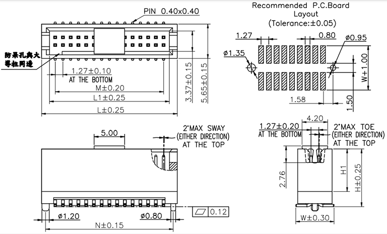 絕緣材料:高溫熱塑性塑料,UL 94V-0 LCP