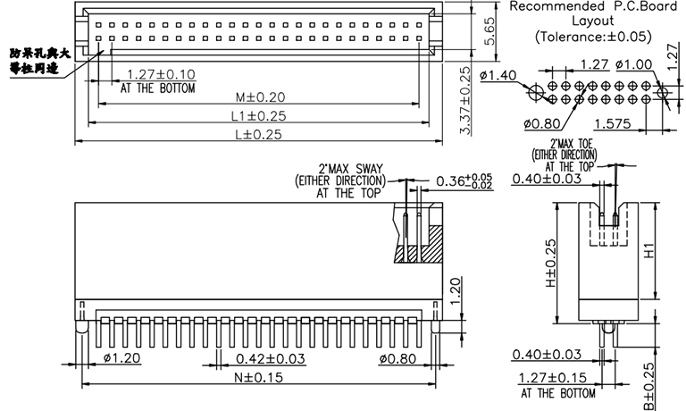 P/H1.27mm Box header EB252(簡(jiǎn)牛)