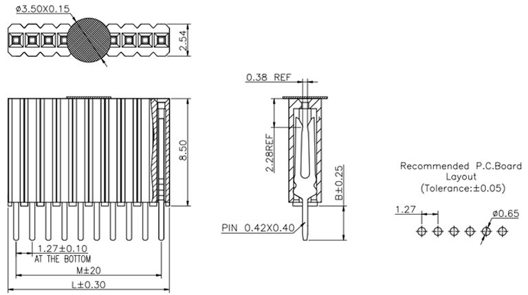 P/H1.27mm 單排排母 EA101